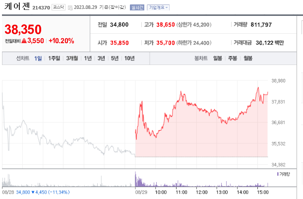 [특징주]케어젠, 액면분할 후 거래재개 첫날 강세