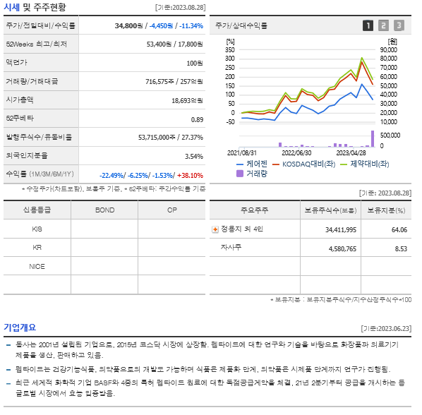 -2023년 3월 전년동기 대비 연결기준 매출액은 61.3% 증가, 영업이익은 49.4% 증가, 당기순이익은 87.9% 증가. 국내 최초 펩타이드 기반 코에 뿌리는 코비드-19 항바이러스 치료제 "스파이크다운"을 개발 중으로 코비드-19 해결의 획기적인 전환점이 될 것으로 기대됨. 동사가 개발한 습성황반변성 치료 펩타이드는 현재 전임상이 완료되었으며 미국 식품의약국(FDA) 임상 시험계획서(IND)를 제출 준비 중임.